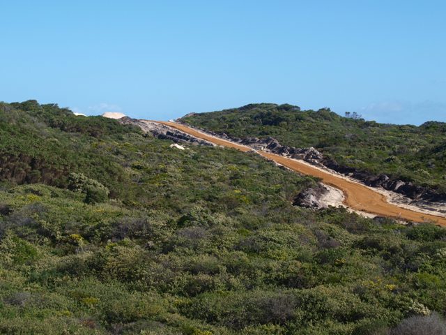 The roads are finished with a layer of gravel and are now ready for the concrete trucks. Below is the road to turbine 2. The road to turbine 2 above and turbine 1 below. The intersection of the roads to turbine 1 and 2.