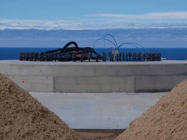 The formwork is removed from T2 foundation and the cabling pulled through.