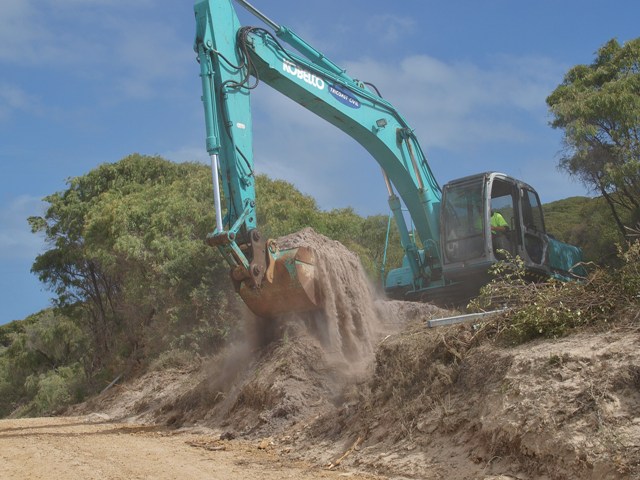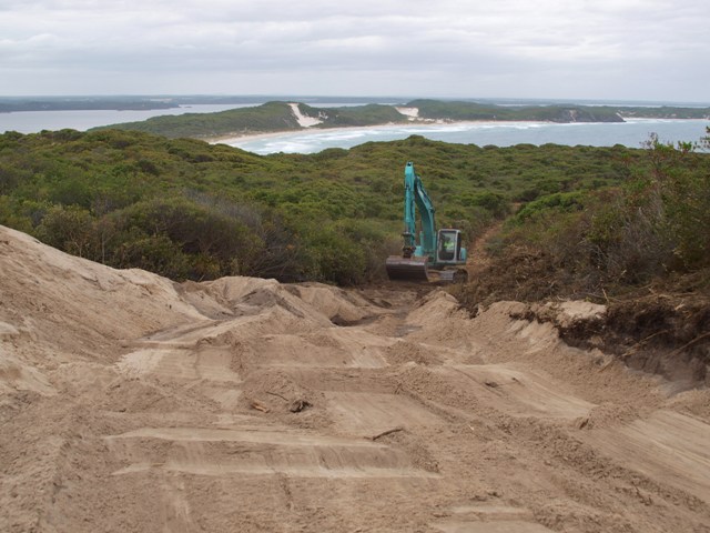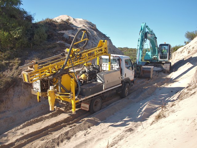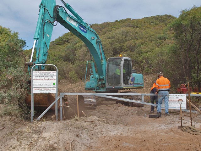 The first works Leveling the site entrance The sign and the gate at the entrance The excavator grazing . . . Cutting through the valley entrance Pulling the drilling rig through the sand back © Copyright 2012 SkyFarming Pty Ltd