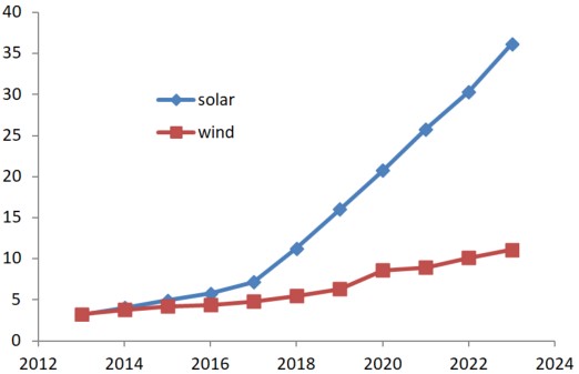 A comparison of the economics behind the two biggest renewable generation technologies in Australia, today. As can be seen in the graph below of accumulated install, Australia's wind fleet has increased steadily over the past ten years, while solar took off in 2017.