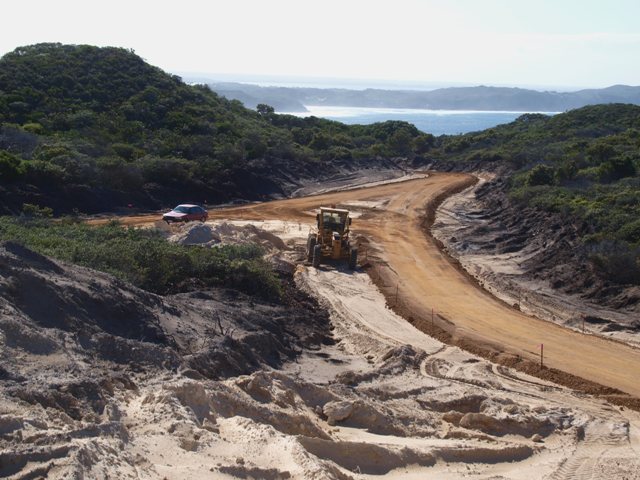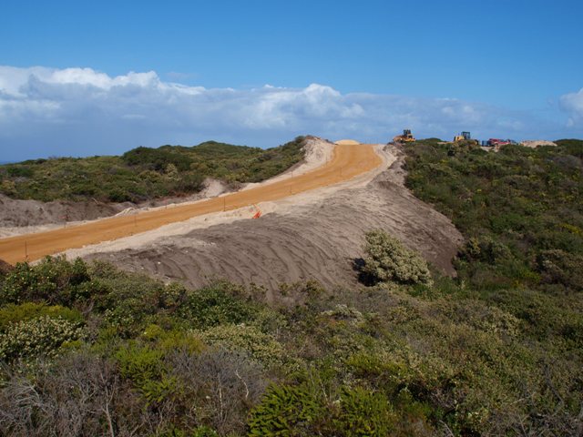 The roads are finished with a layer of gravel and are now ready for the concrete trucks. Below is the road to turbine 2. The road to turbine 2 above and turbine 1 below. The intersection of the roads to turbine 1 and 2.