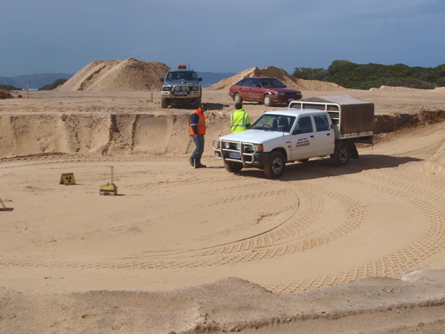 Testing the compacted soil for the foundation.
